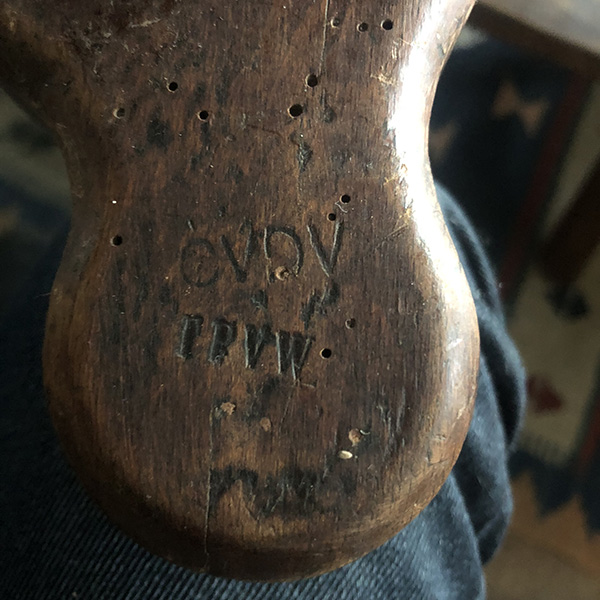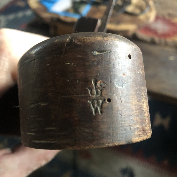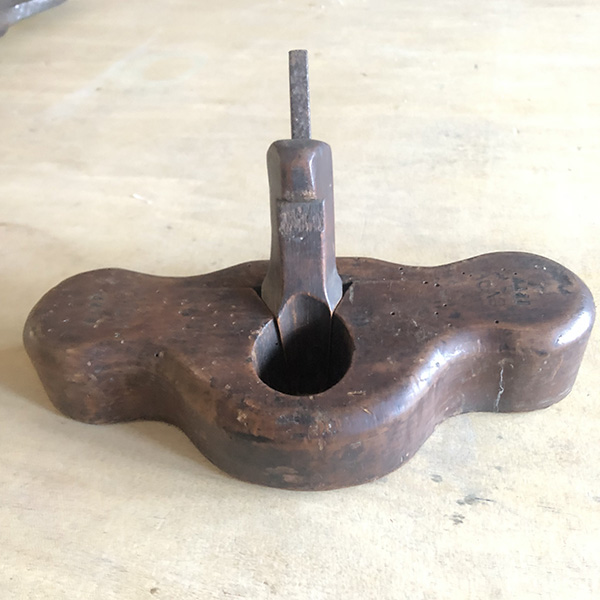 Een antieke grondschaaf , vermoed van een kuiper, in originele staat. Een paar houtwormgaatjes die behandelt zijn. De grondschaaf is gemerkt aan bovenzijde en aan beide zijkanten: